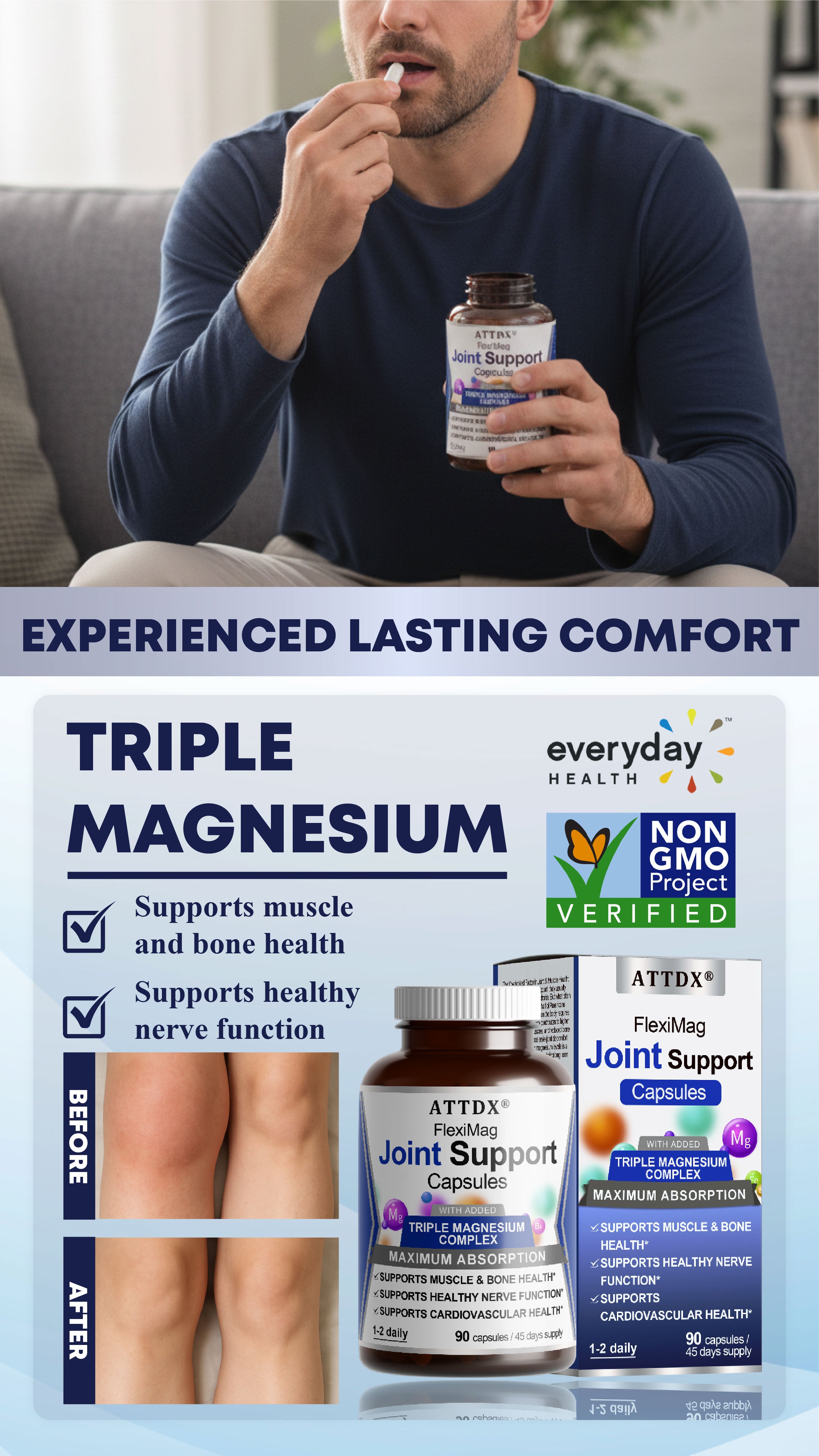 That is why ATTDX® Capsules were created with a Triple Magnesium Complex to bring comfort, restore strength, and help you move freely again.