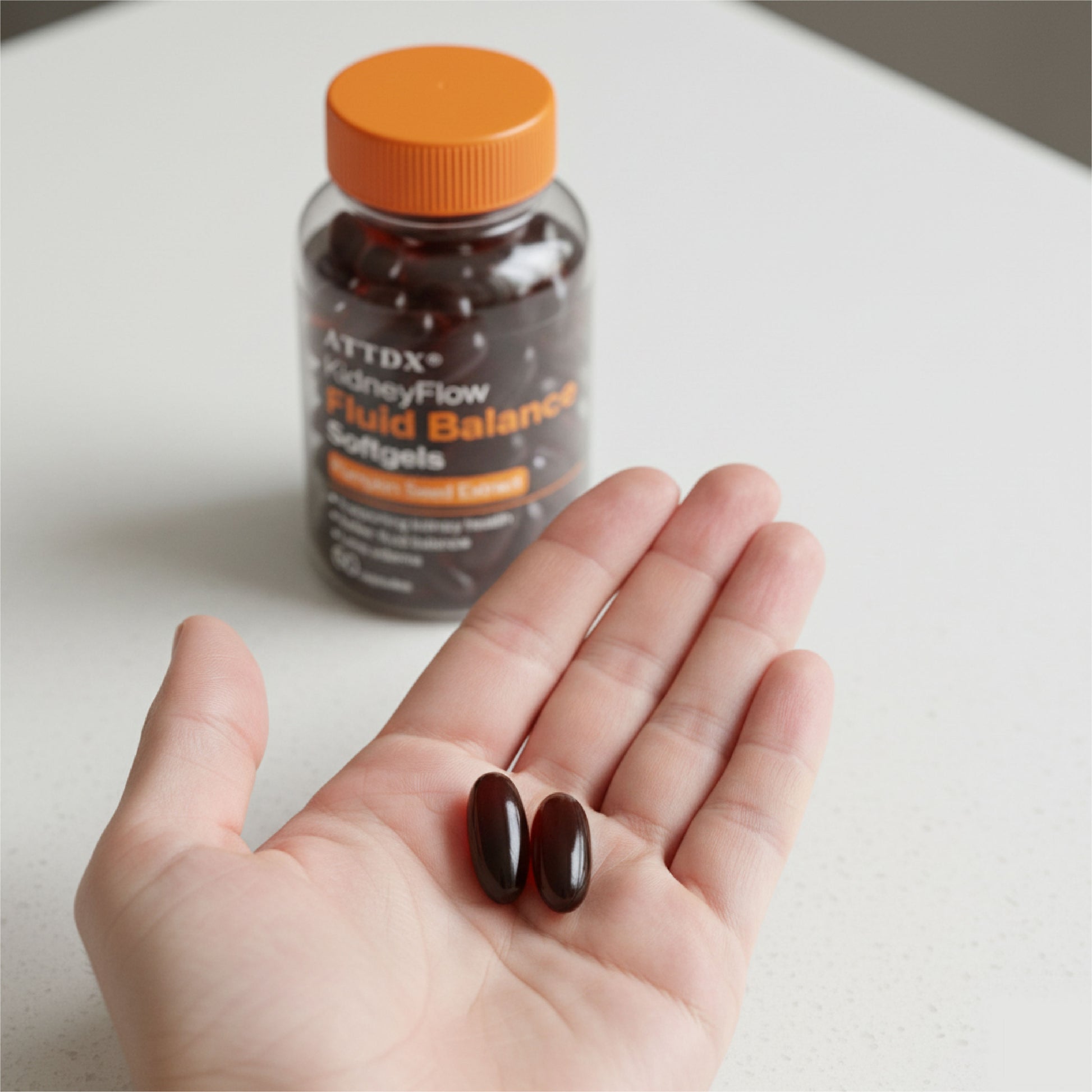 ATTDX® KidneyFlow Fluid Balance Softgels work by gently encouraging the body to release this extra water, helping reduce puffiness and tightness.