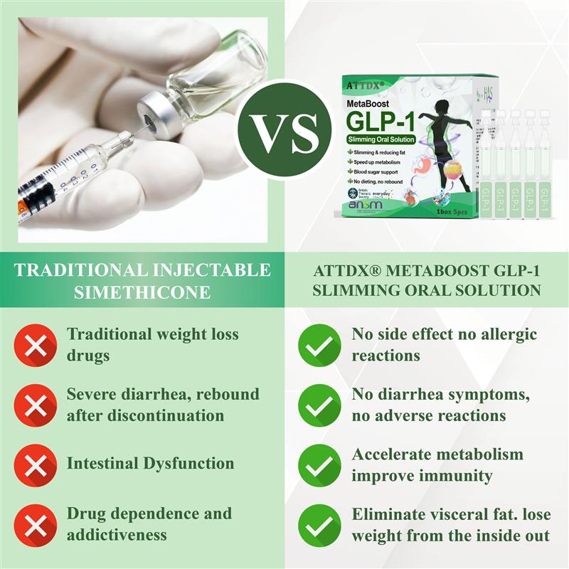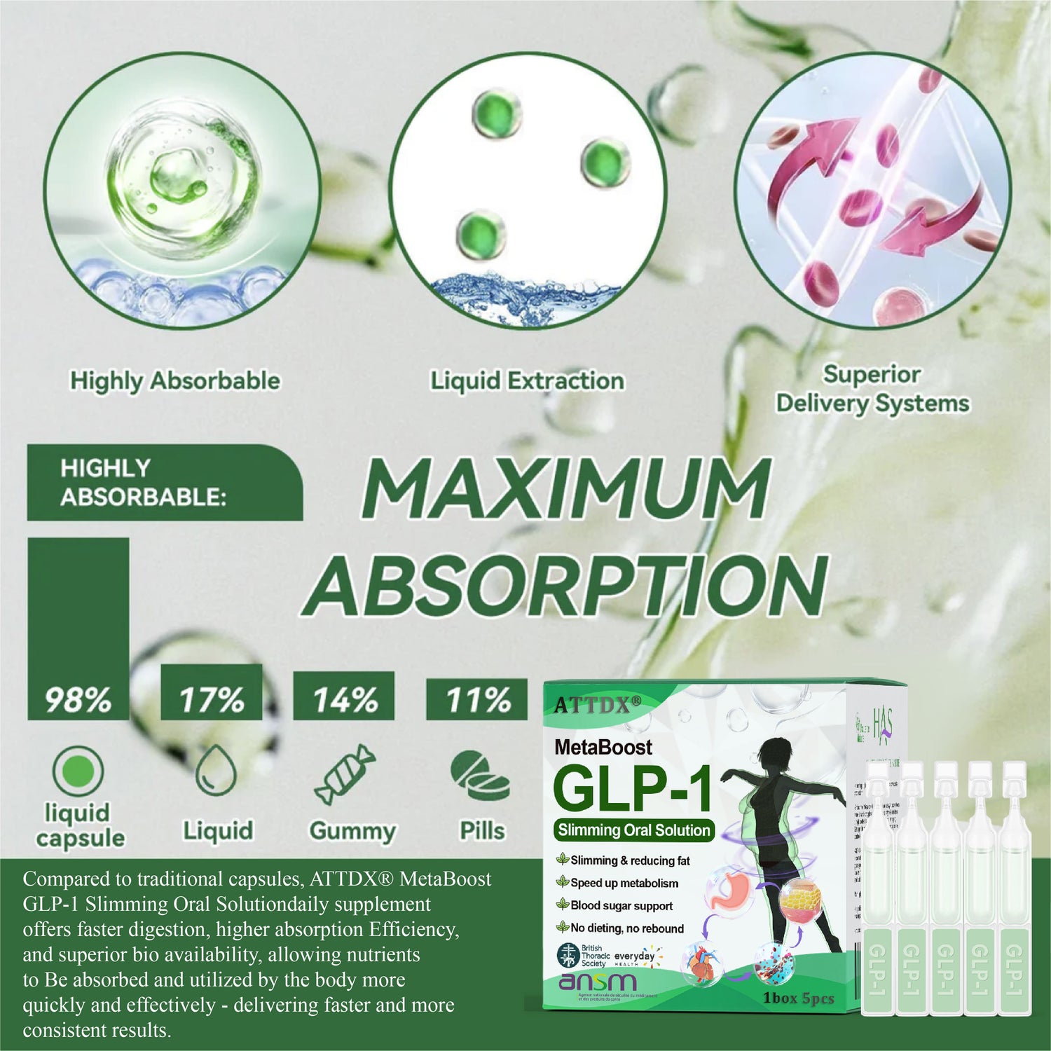 Boost your weight goals with ATTDX® MetaBoost GLP-1 Slimming Oral Solution, powered by GLP-1 to curb cravings and support blood sugar balance. It helps promote a slimmer figure while keeping your energy steady throughout the day