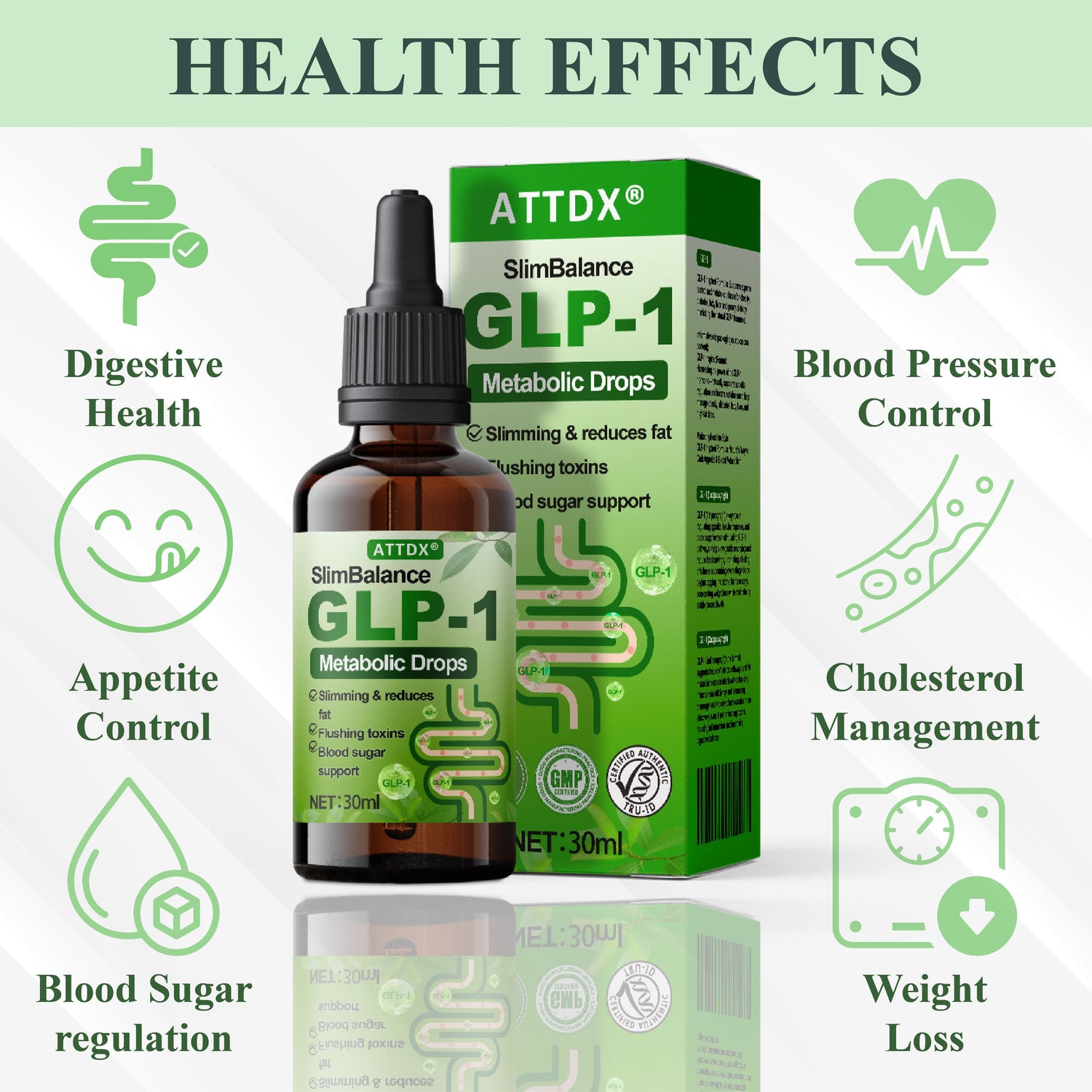 ATTDX® SlimBalance GLP-1 Metabolic Drops are a hormone-inspired, plant-based formula designed to regulate appetite, boost metabolism, and promote steady energy throughout the day. Powered by GLP-1 mimicking ingredients and metabolic-supportive botanicals, this easy-to-use drop formula offers a non-invasive solution for achieving healthier weight management and long-term balance.